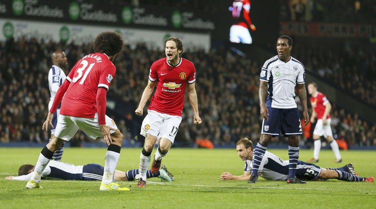 Substitute Marouane Fellaini equalised for United two minutes after the break but Saido Berahino put West Brom back in front before Blind’s low strike in the 87th minute.