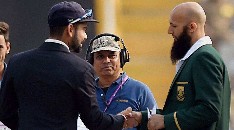 India’s Virat Kohli and South Africa’s Hashim Amla at the coin toss in Mohali. The idea of abolishing the toss can help the visiting teams counter the advantage that a home team usually gets. (Source: PTI)